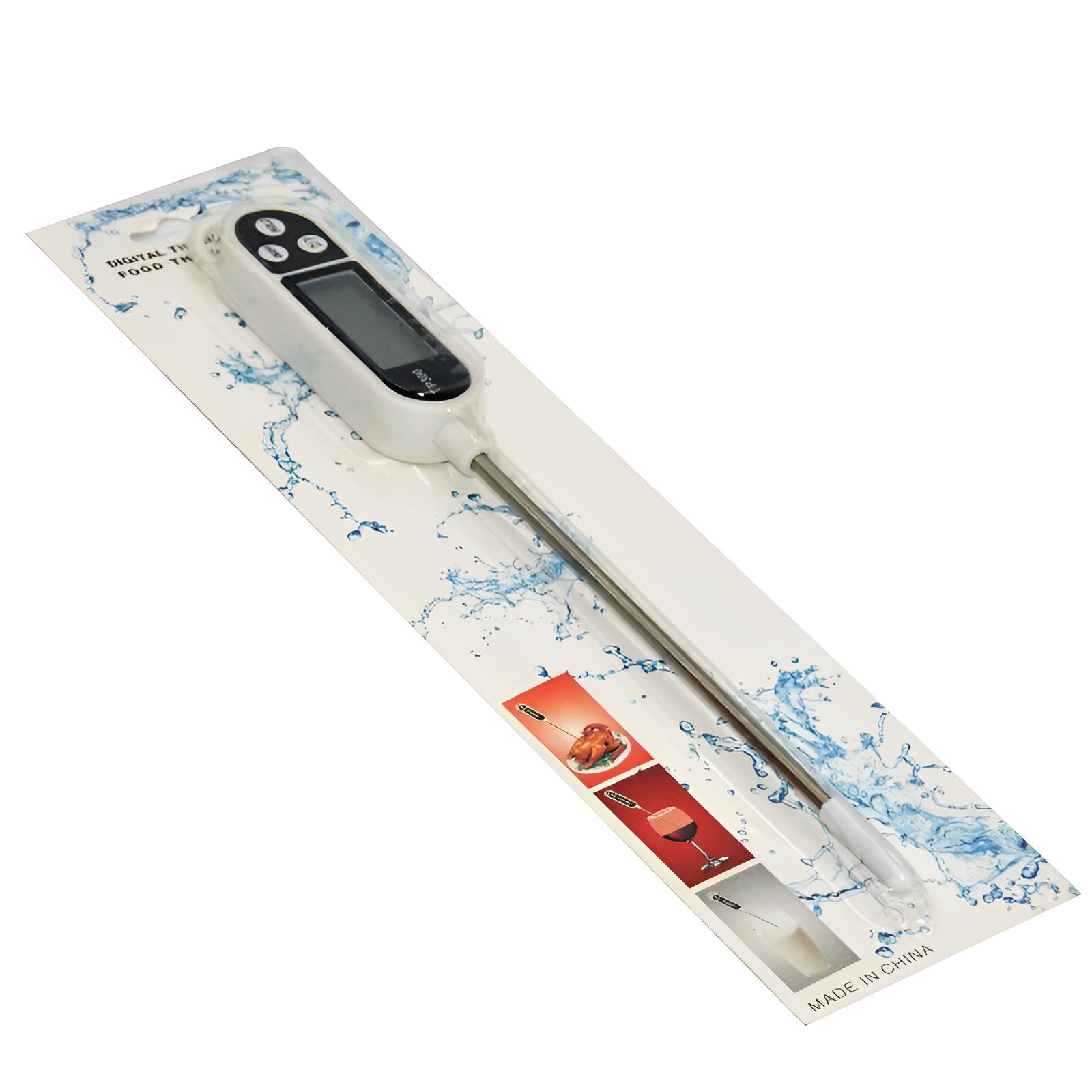 Ψηφιακό θερμόμετρο για μέτρηση θερμοκρασίας προϊόντων, εξοπλισμένο με μακριά βελόνα 14cm , κατασκευασμένη από ανοξείδωτο χάλυβα. Διαθέτει ευανάγνωστη οθόνη ανάγνωσης θερμοκρασίας και υποστηρίζει λειτουργία HOLD.